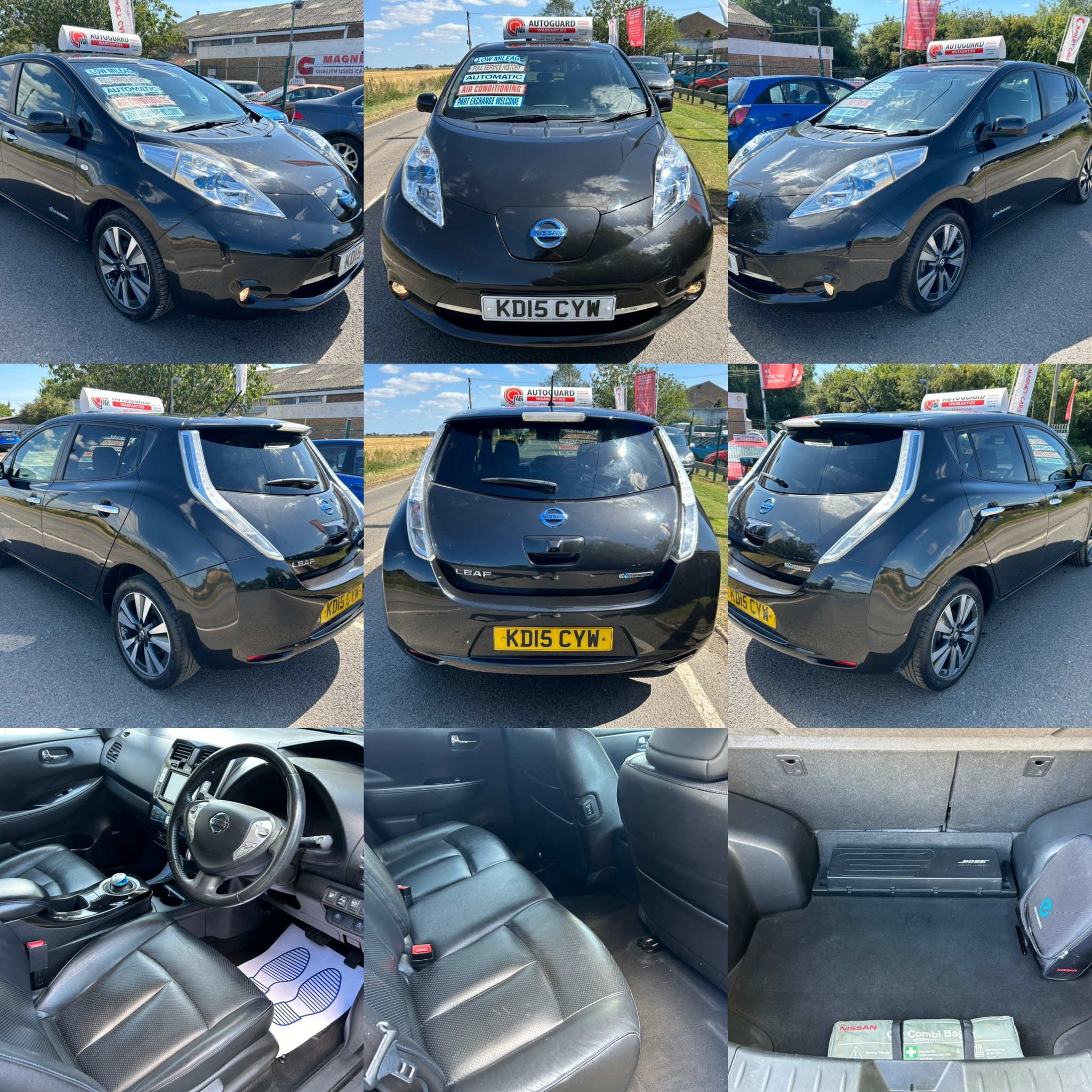 Fuel EfficientWhat a Way to Make A Tree Drive a Leaf and Grow One. Amazing Condition Must Be Seen 2015 Nissan Leaf Tekna Acenta 24kwh Only 1 Former Owner FREE ROAD TAX Only 65,399 Miles Full Main Dealer Service History 8 Stamps in book. Serviced at 3,167 Miles, 3,169 Miles, 14,584 Miles, 24,937 Miles, 34,856 Miles, 43,788 Miles, 50,835 Miles & 60,677 Miles Thick and Chunky Tyres All Round Just Had 2 New Front Tyres MOT Until August 2025 Remote Central Locking 2 Keys Factory Fitted Options Include: Full Black Leather Interior Electric Folding Door Mirrors Sat Nav Bluetooth Handsfree Heated front, Rear Seats and Steering Wheel 360 Degree Parking Camera Electric WIndows x 4 Cruise Control LED Headlights Speed Limiter Rear Privacy Glass Climate Control Air Conditioning Both Charging Leads To List But A Few Both Charging Cables Included Monday to Friday 10.00 – 17.00 Saturday’s 10.00- 16.00 Sundays & Bank Holidays By Appointment ☎️ Office 01733 795102 ☎️ Jon 07739 353500 www.magnetcars.co.uk BACS OR CASH PAYMENTS ONLY